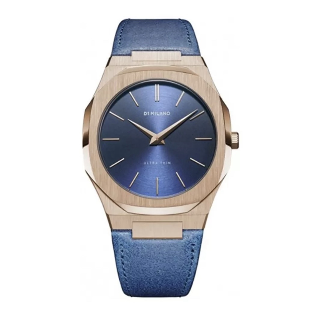 D1 MILANO GALILEO ULTRA THIN LEATHER PINK GOLD STEEL WATCH 40MM WITH BLUE LEATHER STRAP